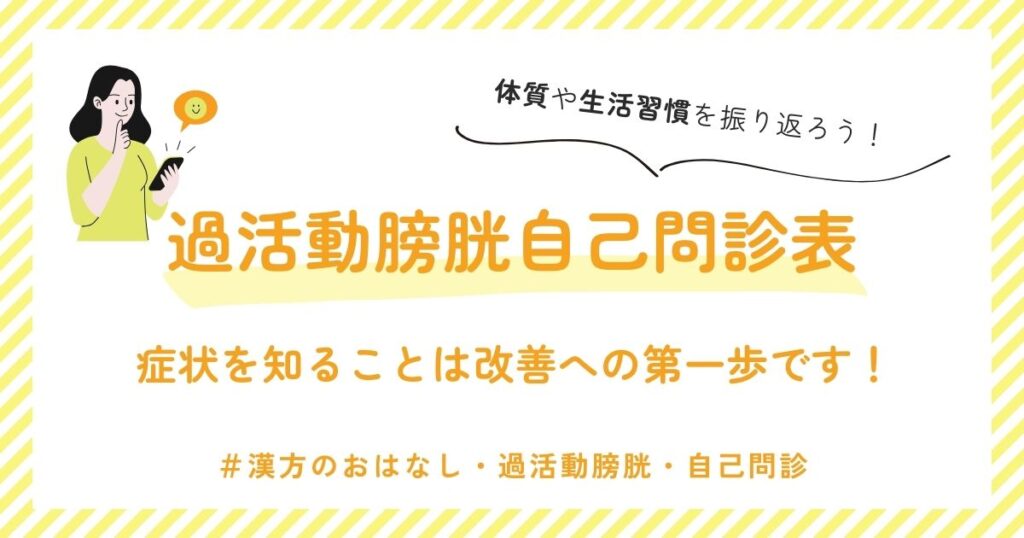 この問診表は 過活動膀胱(OAB)の症状を整理しながら ご自身の体質や生活習慣を振り返るためのものです。 記入していただくことで 症状の背景がより明確になり 西洋医...